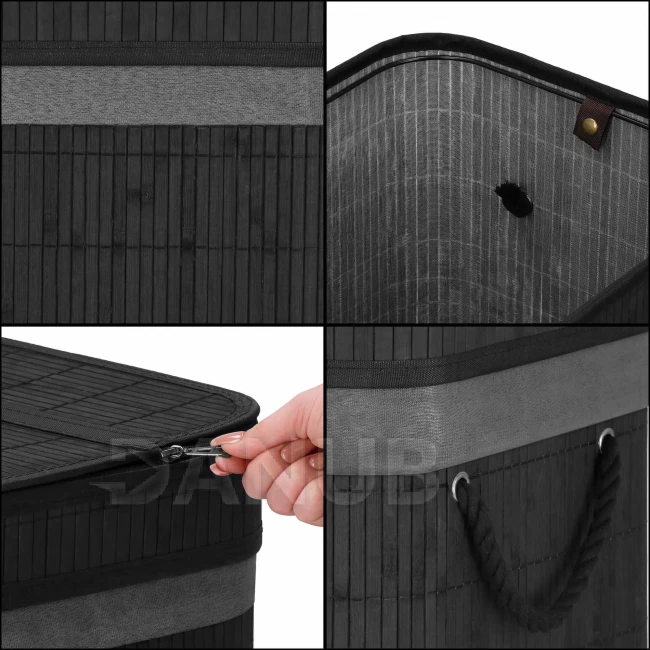Bambusový kôš na bielizeň - 100L - 2 komory - čierny