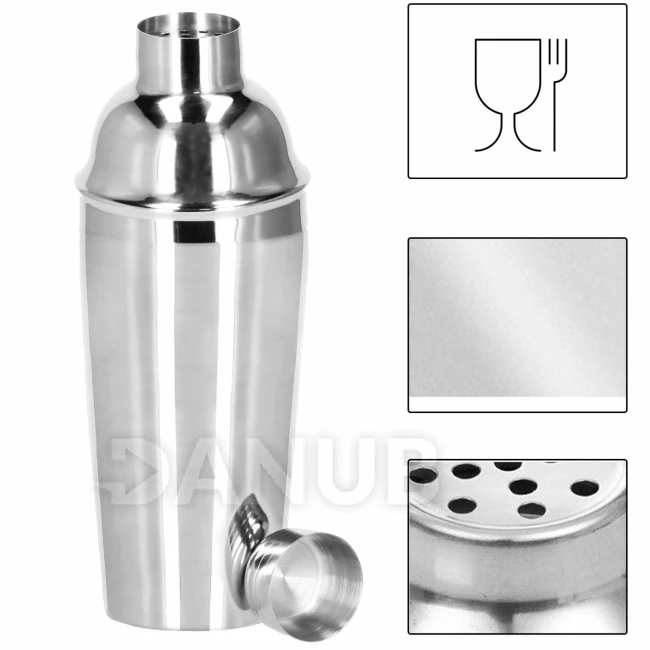 - Trojdielny šejker - výška: 20 cm / priemer náplne: 8,3 cm / priemer dna pohára: 6 cm / priemer sitka: 4 cm