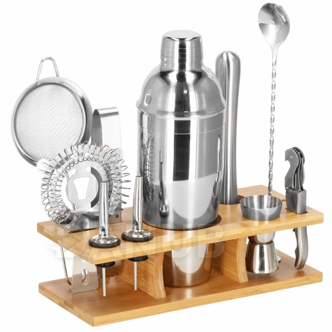 Barmanská súprava na kokteily so stojanom - 11 prvkov - strieborná