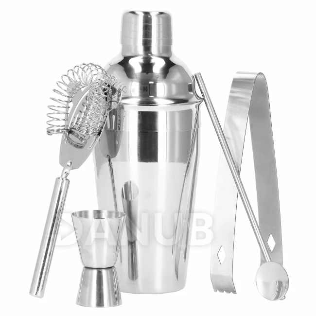 Barmanská súprava na nápoje - 8 prvkov - šejker 550ml - so stojanom - strieborná