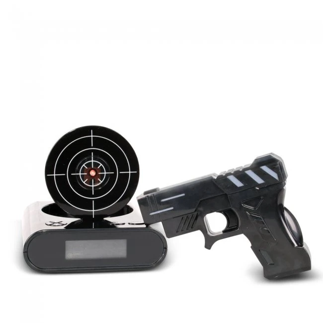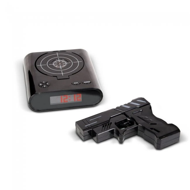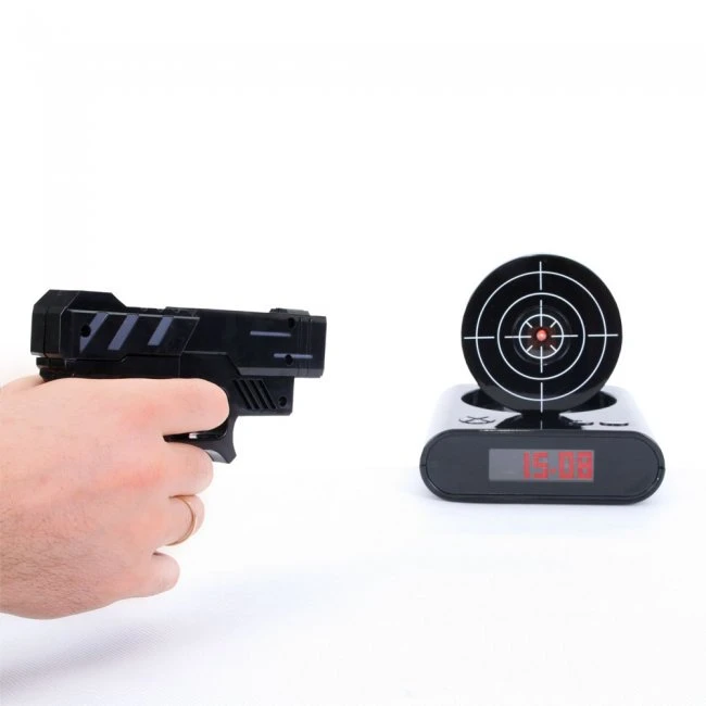 Zvonenie sa nevypne, až kým netrafíte terč. Zbraň, ktorá vyzerá ako pravá, je v skutočnosti diaľkovým ovládaním.