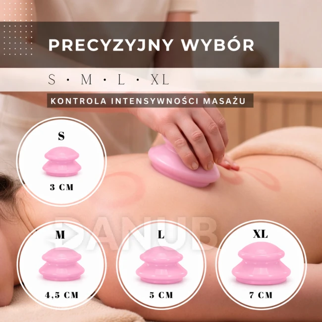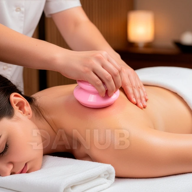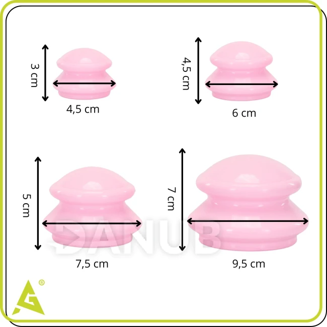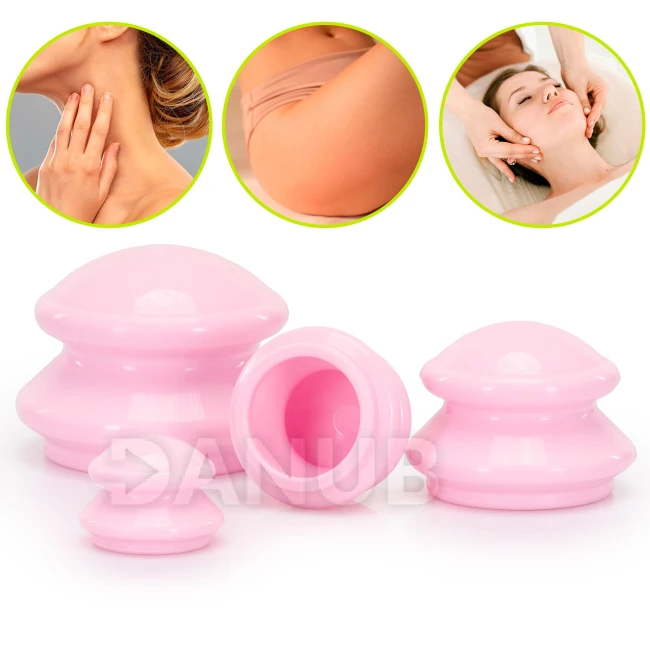 Čínske bankové vaničky, gumené, na masáž, sada 4 kusov, proti celulitíde, ružové