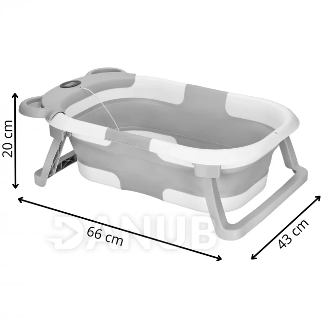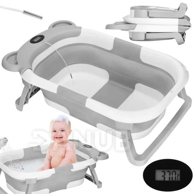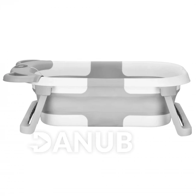 Detská prenosná silikónová vanička - 27,5 l - so zátkou a teplomerom - bielo-sivá