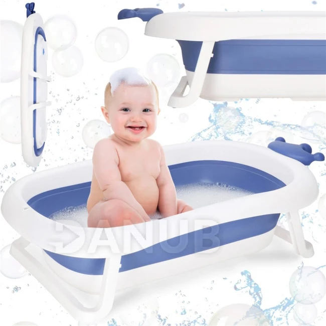 Detská prenosná silikónová vanička - 40 l - so zátkou - bielo-modrá