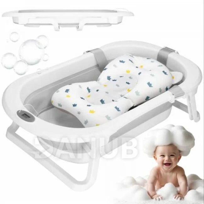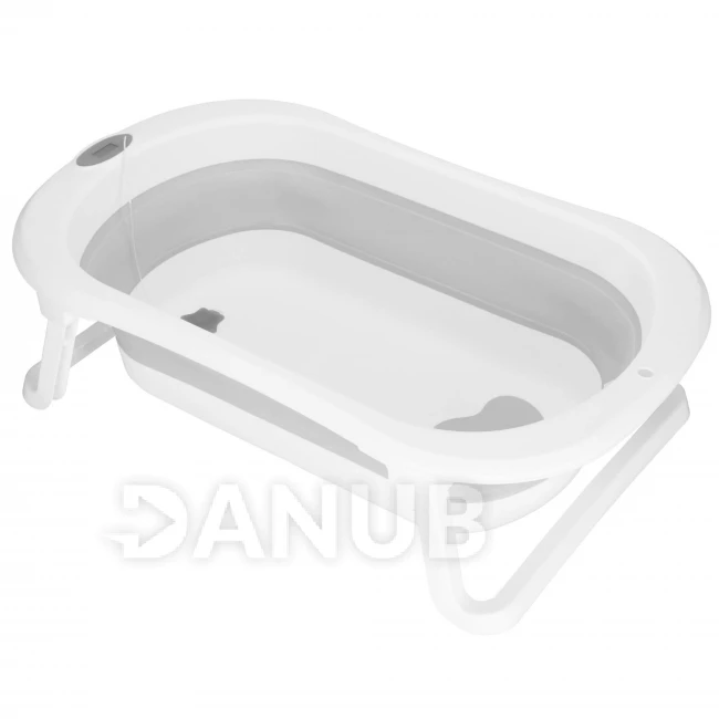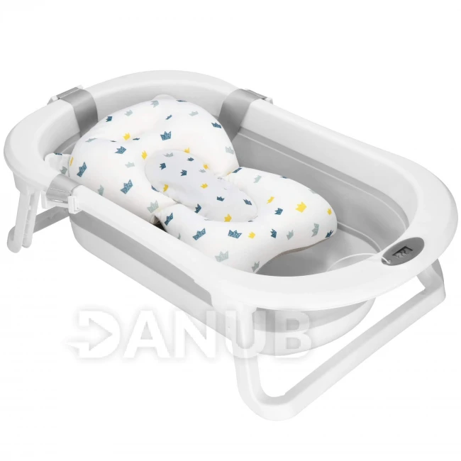 Detská prenosná silikónová vanička - 40 l - so zátkou, podložkou a teplomerom - bielo-sivá