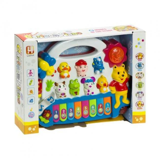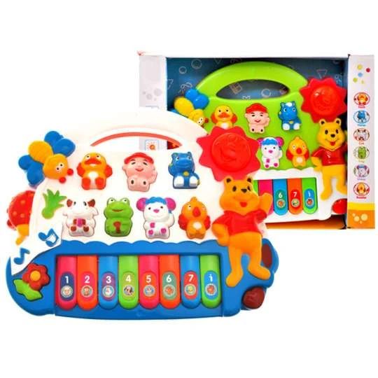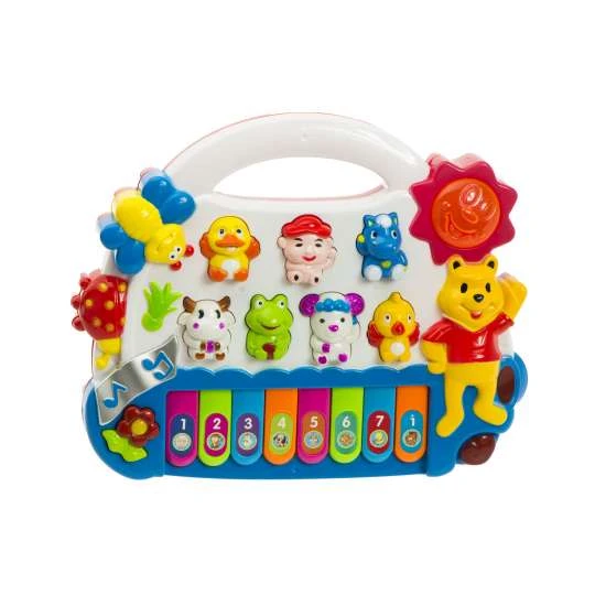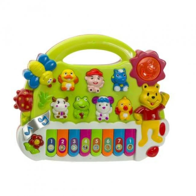 Malý klavír pre deti so zvukovými efektmi – v závislosti od zvoleného režimu klavír vydáva zvuky zvierat, alebo hrá melódiu.
