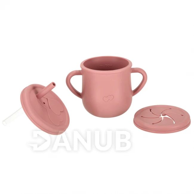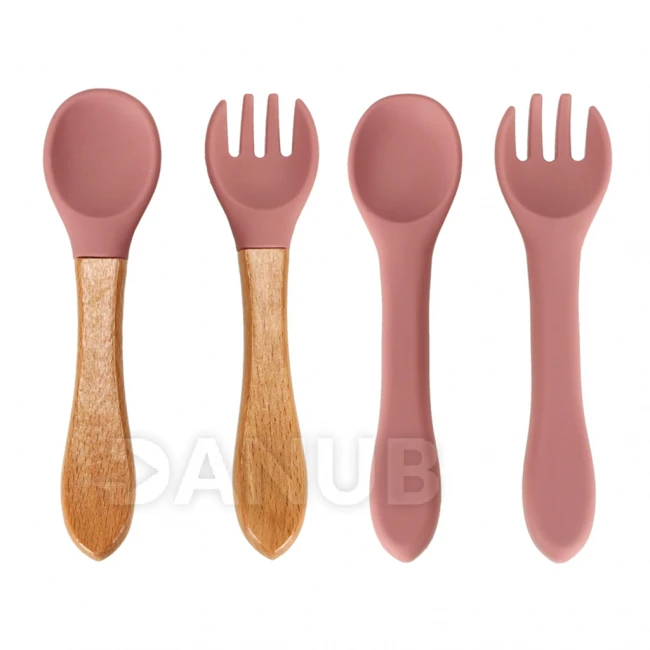 Sada obsahuje aj dve sady príborov, jedna je celá vyrobená zo silikónu a druhá zo silikónu + dreva. Praktický podbradník s vreckom na padajúce jedlo ochráni oblečenie vášho dieťaťa pred zašpinením. Všetky prvky súpravy sú vyrobené z kvalitného silikónu v tmavoružovej farbe. Každý riad sa ľahko čistí a je vhodný do umývačky riadu.