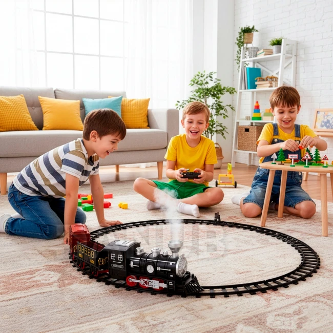 - Lokomotíva vydáva realistické zvuky a uvoľňuje hmlu.