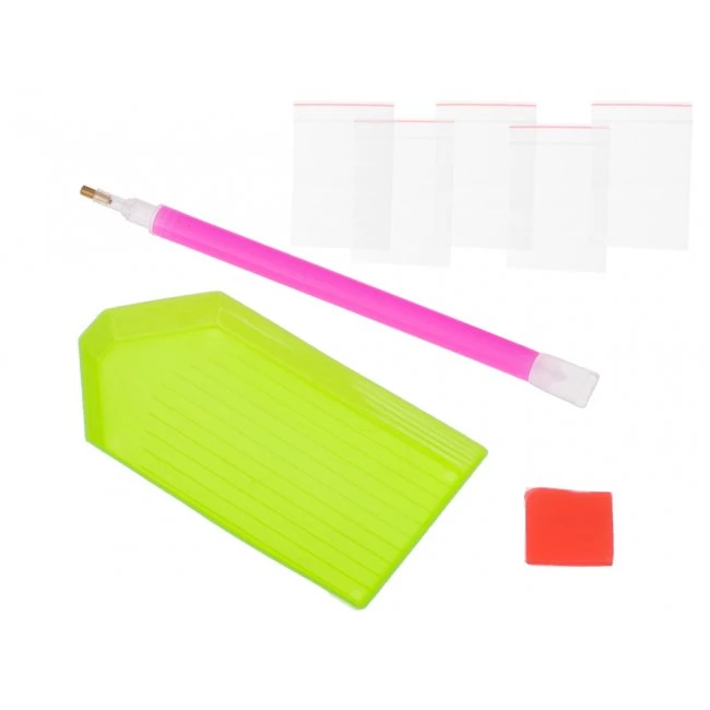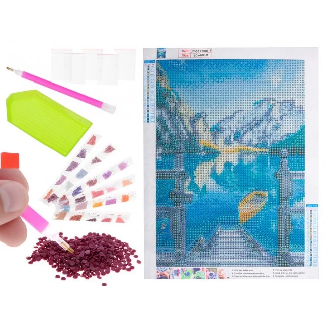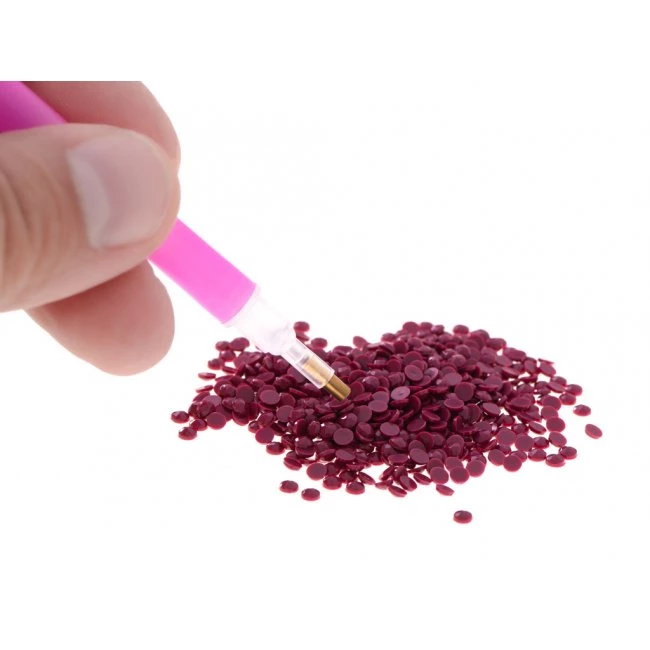 Prilepte diamant na aplikátor suchým lepidlom a priložte ho na plátno na správne miesto.