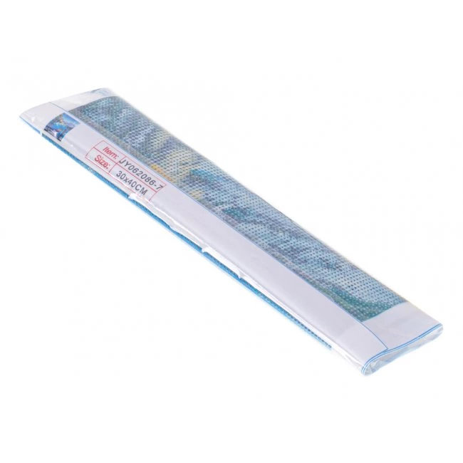 Celé plátno je pokryté vrstvou samolepiaceho lepidla, vďaka ktorému sa diamanty prilepia. Odstráňte fóliu z plátna z prvku, kde budete korálky aranžovať.