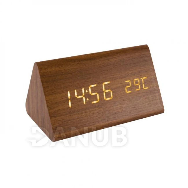 Digitálny budík s LED displejom, hnedé drevo