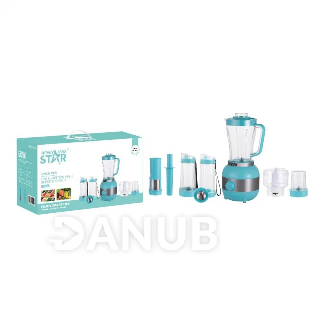 | Nádoby: | 1 ks veľká nádoba na turmixy (džbán) 1 ks malá nádoba na mlenie 1 ks mlynček na mäso 1 ks filter 2 ks prenosná fľaša |
