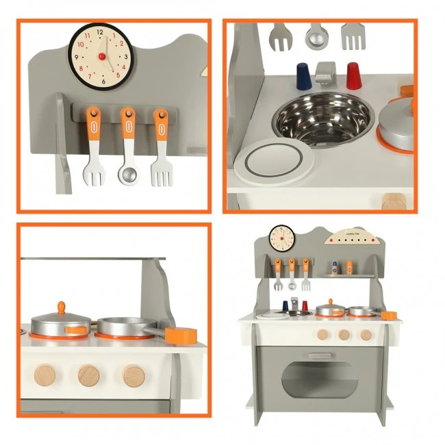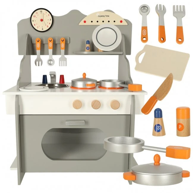 Drevená kuchynka pre deti s veľkou rúrou - MDF - sivá
