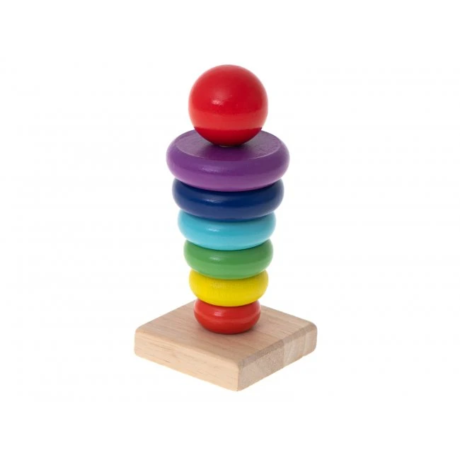 Drevená pyramída drevený na triedenie -farebná - 13 cm