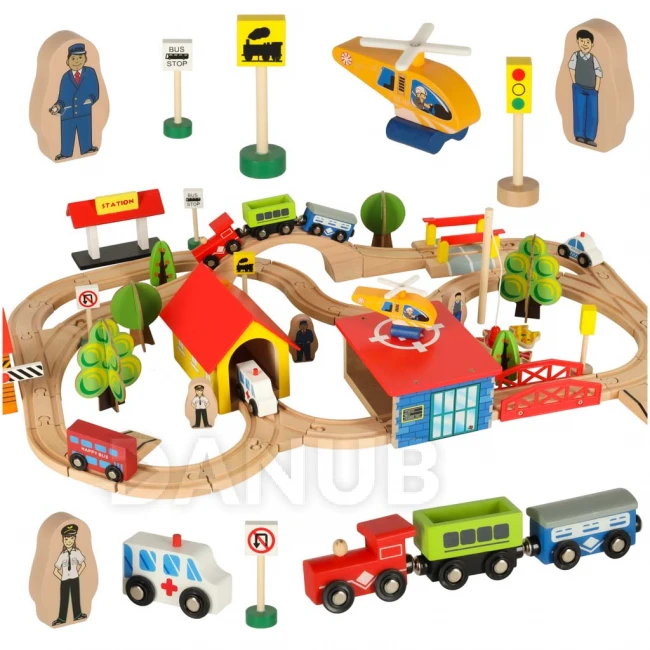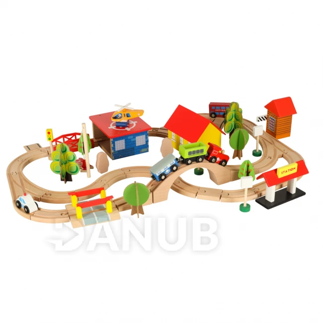 Drevená vlaková súprava - 69 komponentov