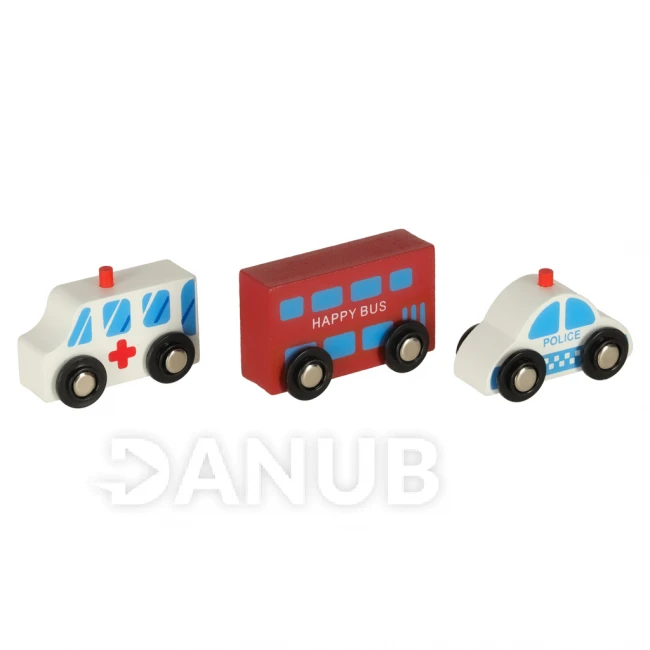 Vozidlá (sanitka, policajné auto, autobus, vlak s 2 vagónmi)