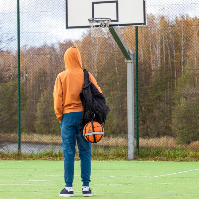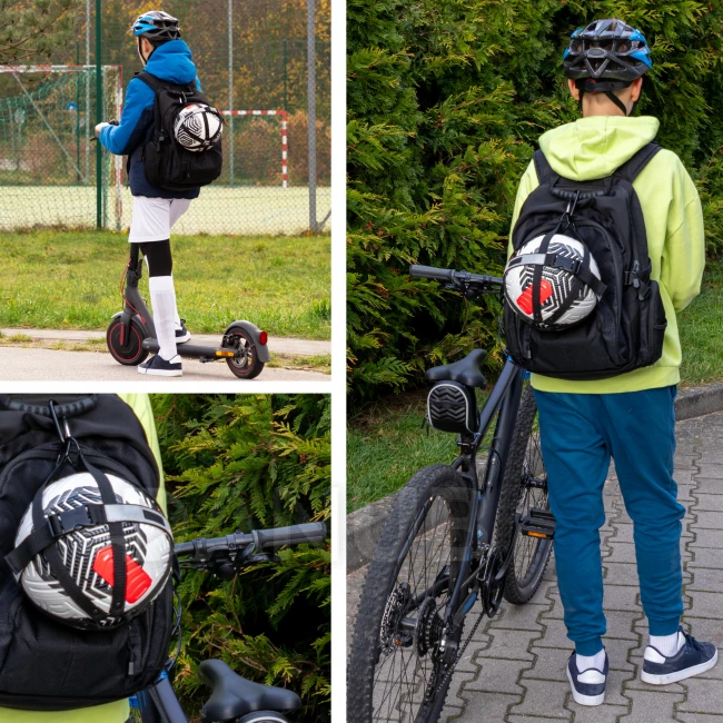Univerzálny držiak na upevnenie a nosenie lopty na batohu alebo športovej taške.