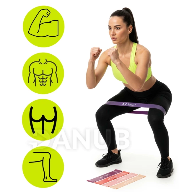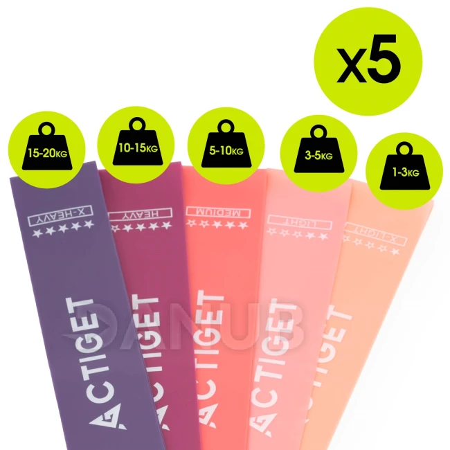 Fitnes odporové gumy na cvičenie - sada 5 ks - odpor 1-20 kg