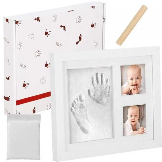 Fotorámček s odtlačkom ruky a nohy odliaty z bielej hliny