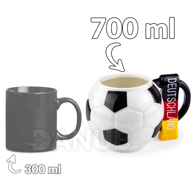 Veľký futbalový hrnček pre fanúšikov s objemom XXL 700 ml a podložka v tvare lopty.
