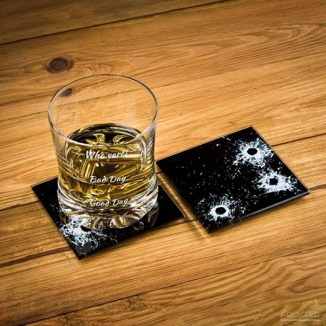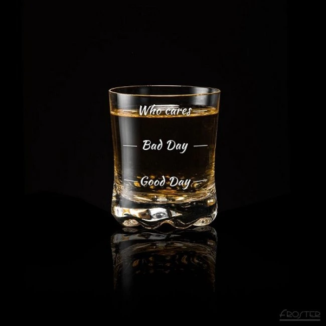 - poháre na whisky s tromi úrovňami: Good Day, Bad Day, Who Cares