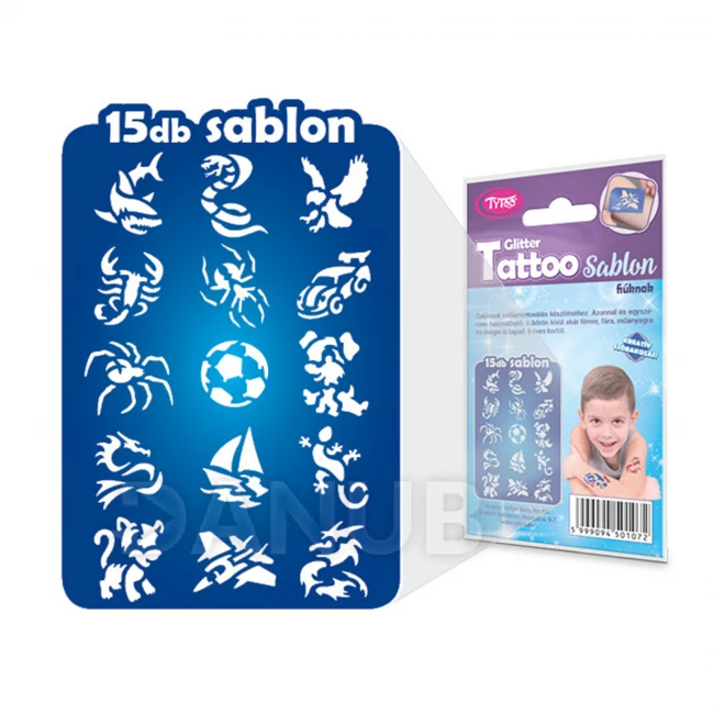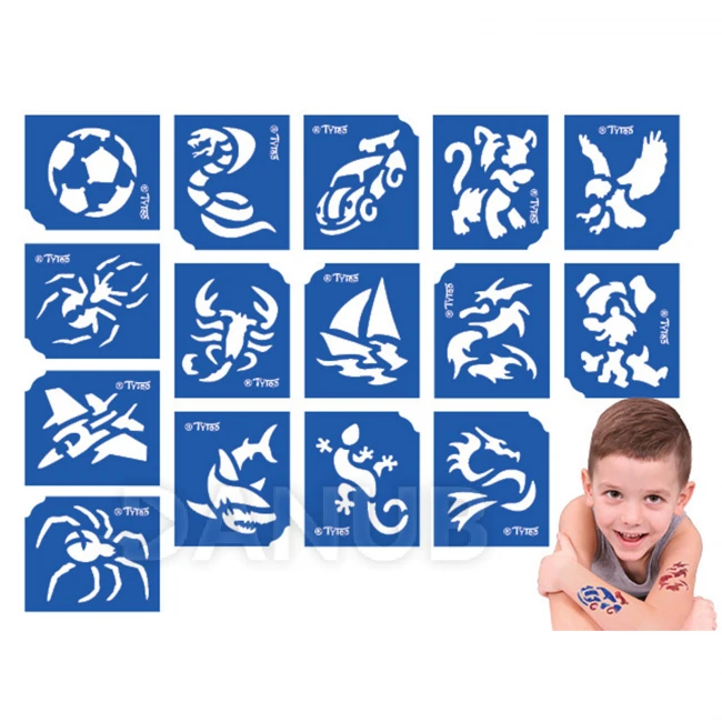 V balení nájdete šablóny, pomocou ktorých môžete vytvárať chlapčenské šablóny tetovaní, ktoré môžete použiť aj k malovaniu na telo. V tomto balení nájdete šablóny, ktoré obľubujú chlapci.Získate hity ako pavúky, hmyz alebo plazy, ktoré určite potešia malých chlapcov.