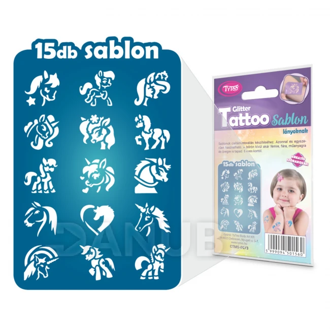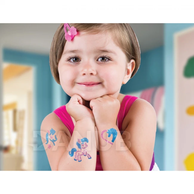 Pomocou šablón, ktoré sú súčasťou balenia, si vytvoríte vzory na tetovanie poníka, koňa a jednorožca, ktoré môžete použiť aj na iné maľovanie na telo.V tejto sade nájdete šablóny ako poníky, kone, jednorožce , ktoré úrčite urobia radosť deťom.