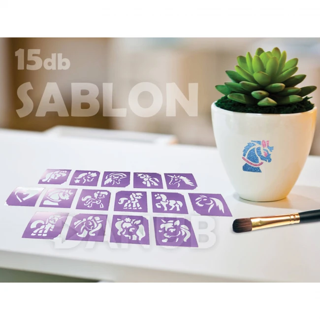 | Šablóny: | 6 ks Jednorožcov (5x5 cm) 5 db Poníkov (5x5 cm) 4 db Koník (5x5 cm) |