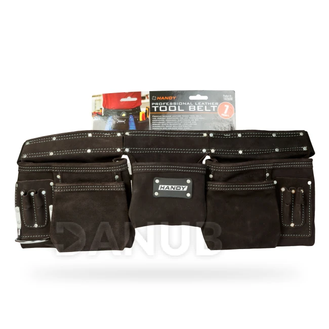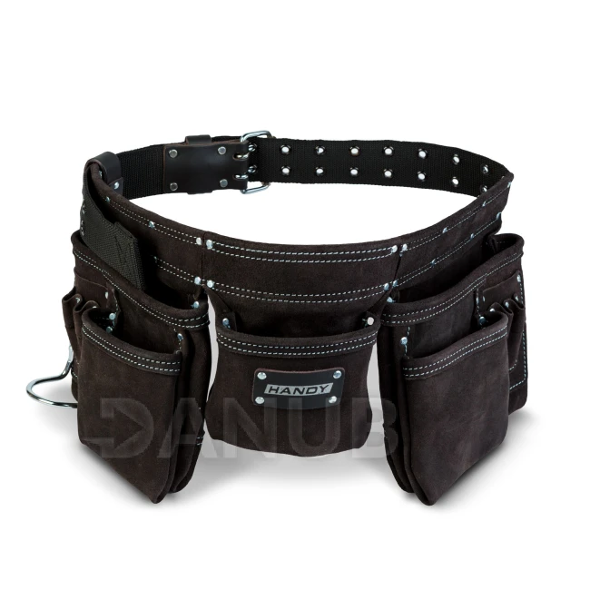 Extra kvalitný pracovný opasok Handy z pravého hovädzieho kože, ktorý je vynikajúcim spoločníkom pre každého remeselníka: stolára, inštalatéra, elektrikára či domácich majstrov. Masívne švy a pevné nity zaručujú dlhú životnosť a dobre rozložené vrecká a držiaky udržia všetky potrebné nástroje poruke.