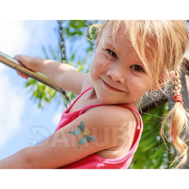 - Aj v tom najsilnejšom letnom slnečnom svetle zostáva žiarivo sfarbené, takže sa vaše dieťa môže tešiť zo svojho trblietavého tetovania po dlhú dobu