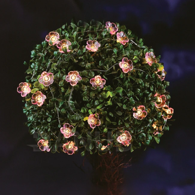 Solárna sveteľná reťaz - kvet - 2,4 m - 25 teplých bielych LED