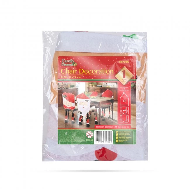 Oblečte svoj domov do slávnostnej nálady s touto súpravou dekorácií na stoličky. Červená / biela farba vyzerá dobre v každom slávnostnom interiéri. Vďaka svojim veľkým rozmerom je kompatibilný s väčšinou stoličiek.