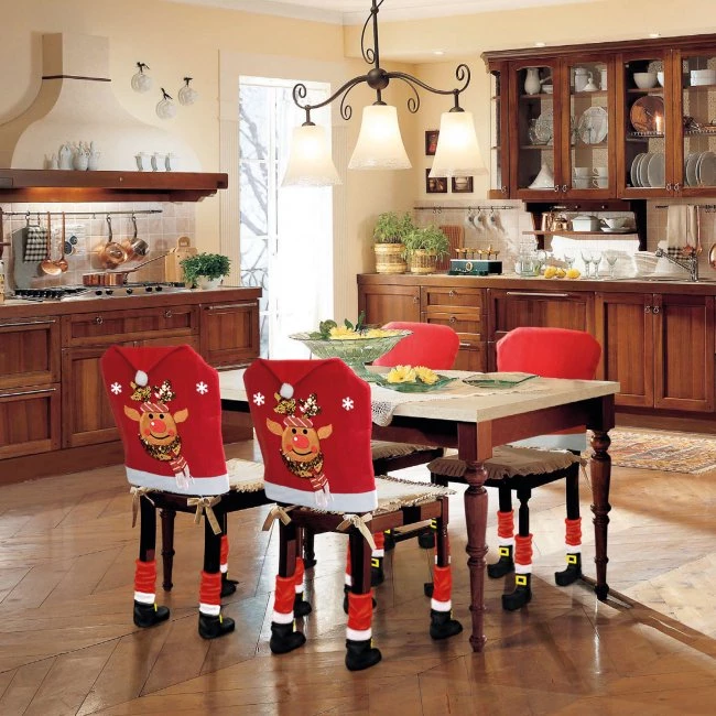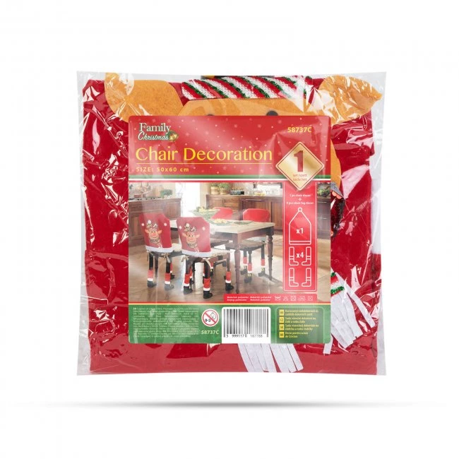 Oblečte svoj domov do slávnostnej nálady s touto súpravou dekorácií na stoličky. Červená / biela farba vyzerá dobre v každom slávnostnom interiéri. Vďaka svojim veľkým rozmerom je kompatibilný s väčšinou stoličiek.