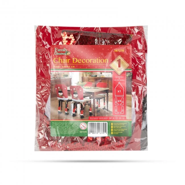 Oblečte svoj domov do slávnostnej nálady s touto súpravou dekorácií na stoličky. Červená / biela farba vyzerá dobre v každom slávnostnom interiéri. Vďaka svojim veľkým rozmerom je kompatibilný s väčšinou stoličiek.