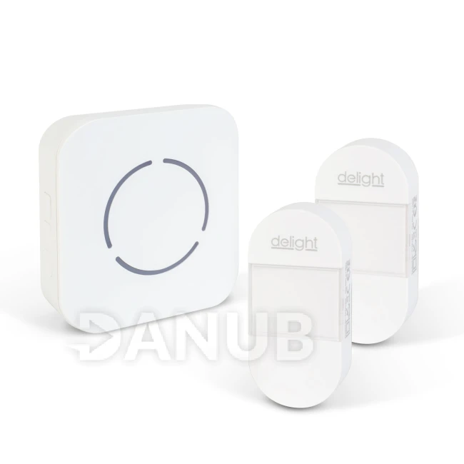 Digitálny bezbatériový a bezdrôtový zvonček – Kinetický – 2 vonkajšie jednotky – biely – modrá LED