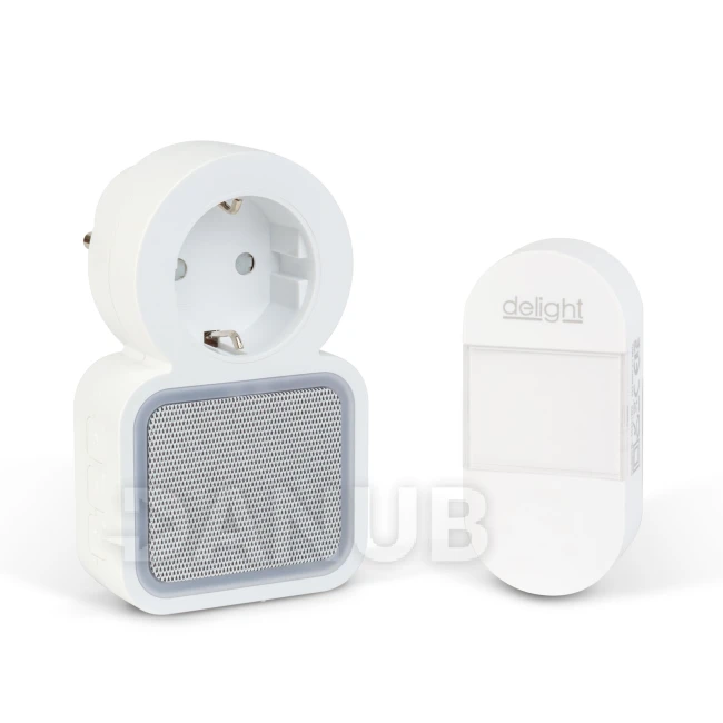 Digitálny bezbatériový a bezdrôtový zvonček – Kinetický – do zásuvky 220–240V AC – biely – modrá LED