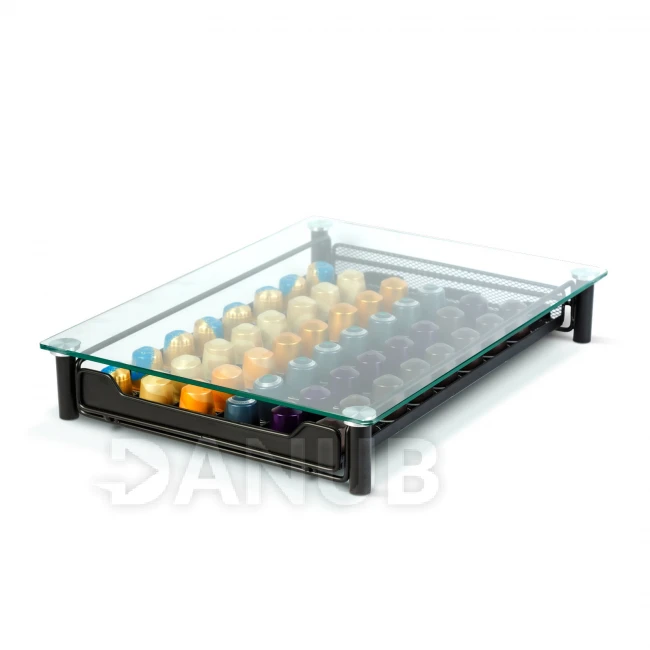 Ak ste aj vy milovníkom kapsulovej kávy, tento zásobník na kapsuly by vo vašej kuchyni rozhodne nemal chýbať. Štýlové a praktické riešenie na usporiadanie Nespresso kapsúl. Moderný čierny rám a sklenený vrchnák dodajú eleganciu každej kuchyni alebo kancelárii. Kovový držiak je vhodný na uloženie až 60 kapsúl, rozdelených do šiestich radov, takže svoju obľúbenú kávu máte vždy po ruke. Vďaka kompaktným rozmerom sa zmestí aj pod kávovar. Ideálna voľba pre milovníkov kávy na každodenné použitie.