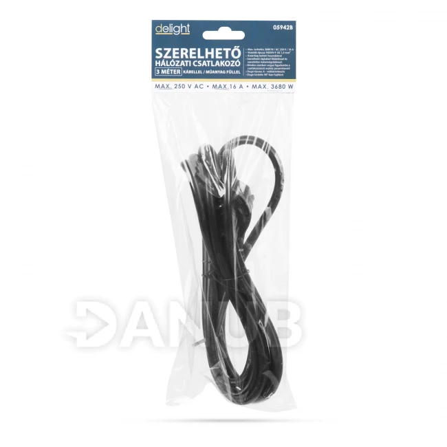 Montovateľná sieťová zástrčka - plastové ucho - 3 metre dlhý kábel - 3 x 1,5 mm2 - čierna
