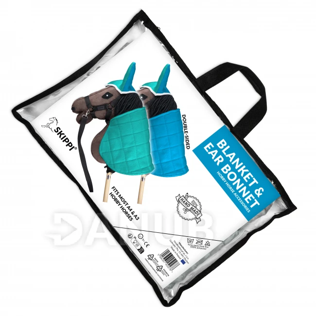 Obojstranná deka a ušné chrániče Skippi pre Hobby Horse - mätová a modrá