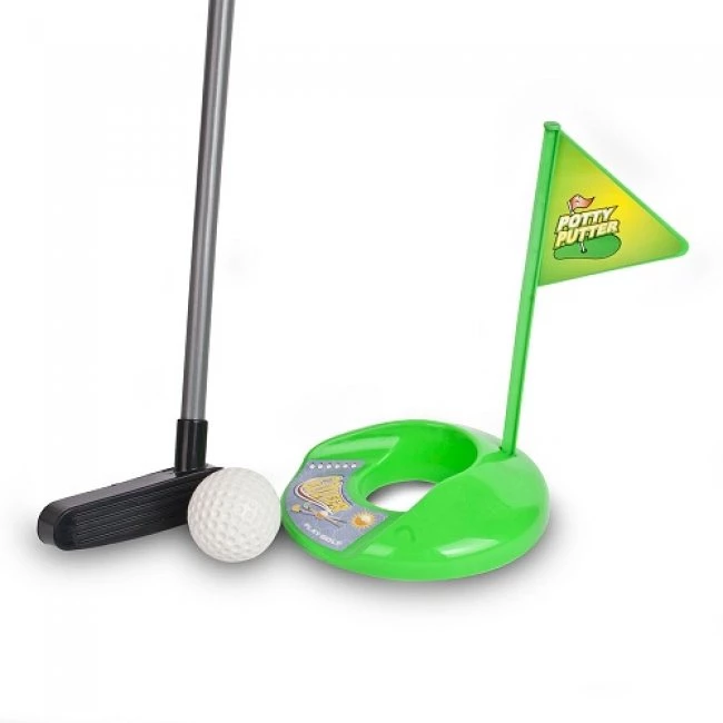 obsah zostavy: zelená podložka, golfová palica, dve loptičky, jamka s vlajkou a ceduľkou "Do not Disturb"