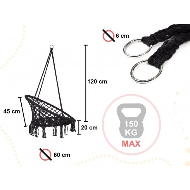 Materiál: bavlnené laná, kovový rám