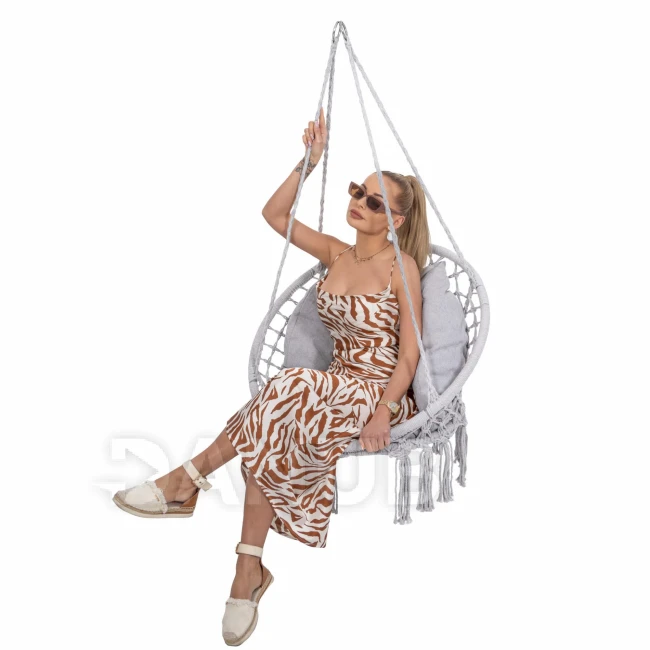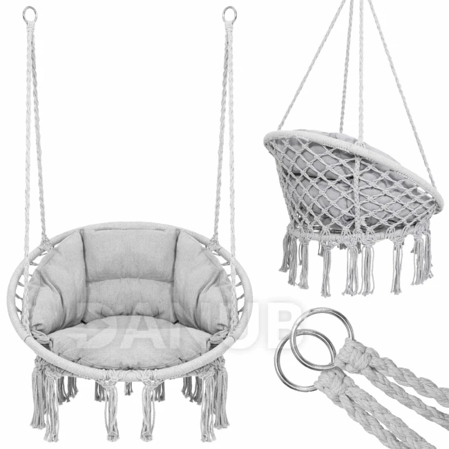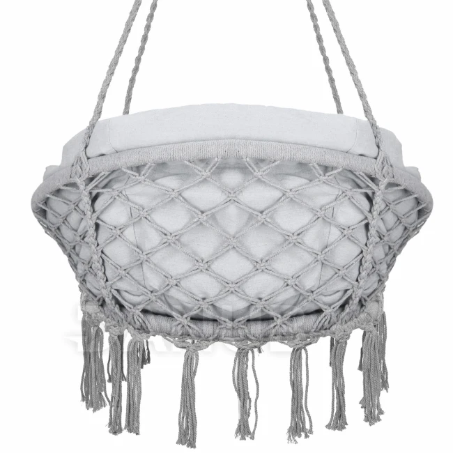 Hojdacie kreslo so strapcami - sivé + sivý vankúš