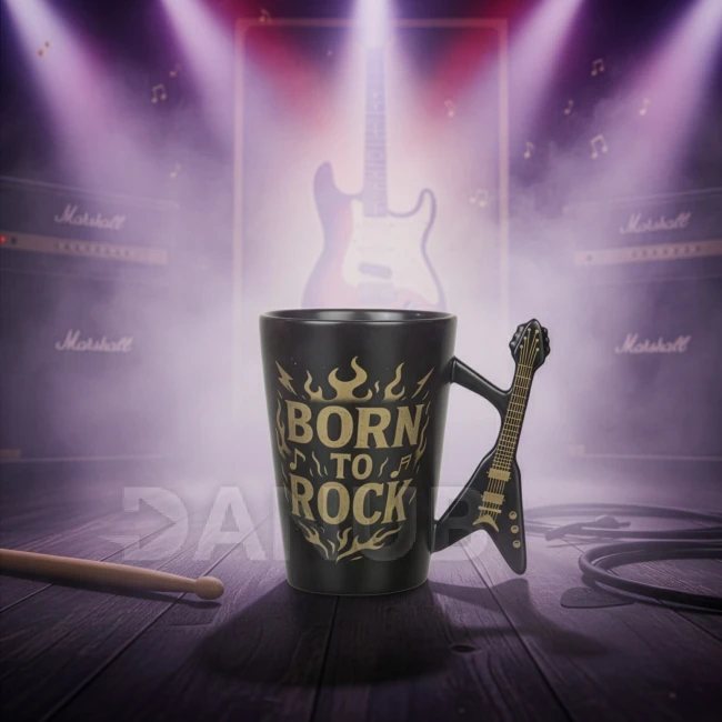 Matný čierny hrnček pre gitaristu alebo rockového fanúšika.
