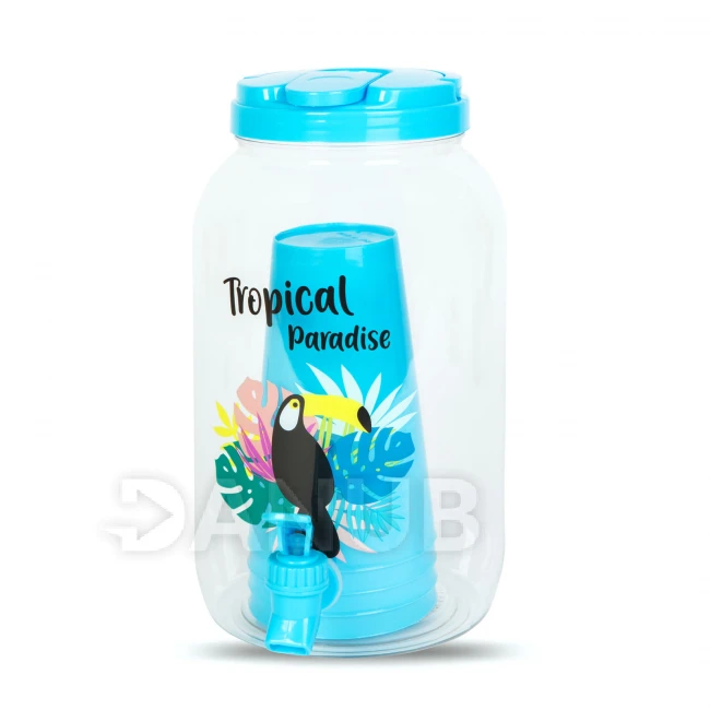 Dávkovač nápojov s kohútikom, plastová sada pohárov - 3,8 l - tropický
