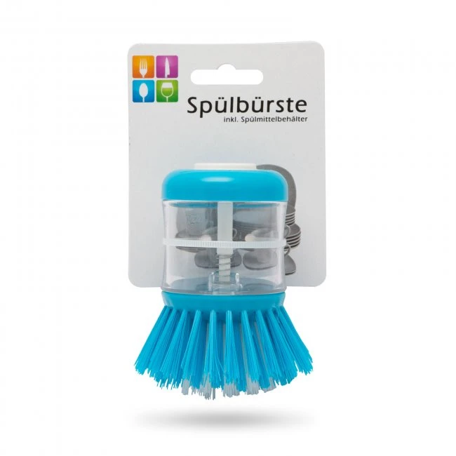 Kefa na umývanie riadu s dávkovačom saponátu - modrá