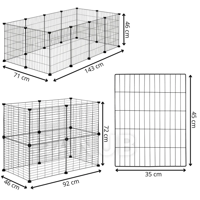 Rozmery klietky v rôznych konfiguráciách: