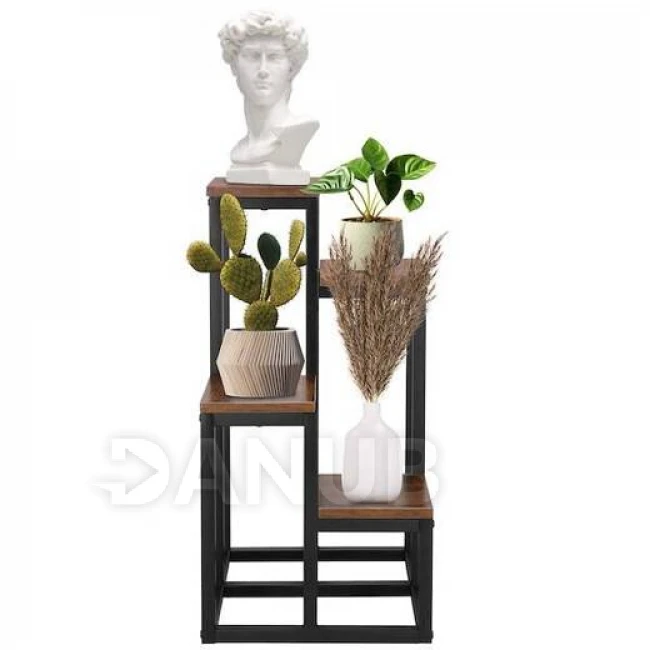 Kovový stojan na kvety so 4 policami - 67,5 cm - čierna/hnedá