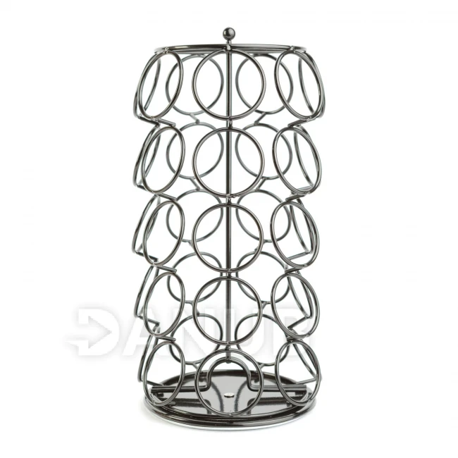 Ak ste aj vy fanúšikom kapsulovej kávy, tento držiak na kapsuly nesmie chýbať vo vašej kuchyni. Rôzne chute a intenzity kapsúl si môžete roztriediť do 7 stĺpcov, vďaka čomu si každý ľahko nájde svoju obľúbenú. Vďaka otočnej konštrukcii sa jednoducho dostanete ku každej kapsule. Držiak má stabilnú kovovú konštrukciu a jeho čierna farba dodáva eleganciu každej kuchynskej linke.