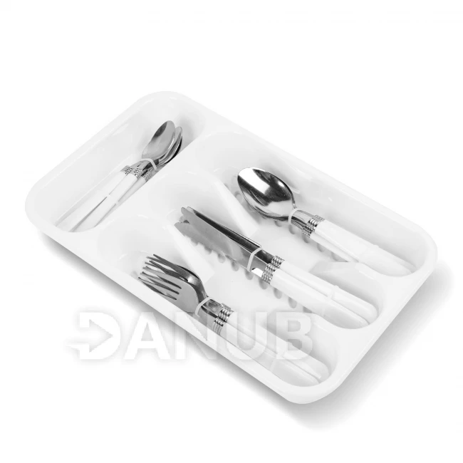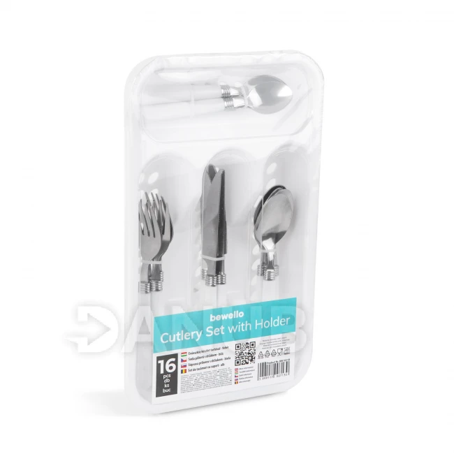 Súprava príborov s držiakom - biela - 16 častí - 32,7 x 19,5 x 4,7 cm