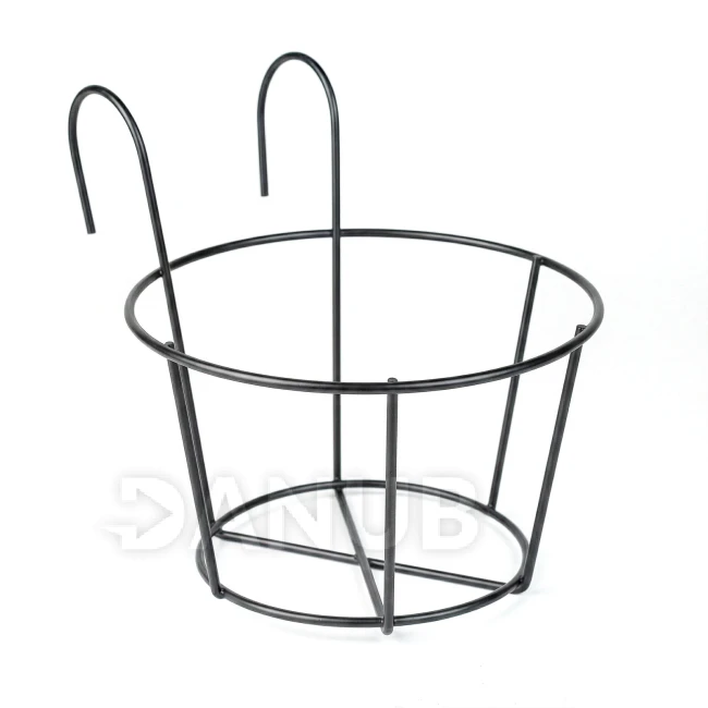 Kovový kôš na zavesenie na balkónové zábradlie – na upevnenie kvetináčov – 18 cm – čierny